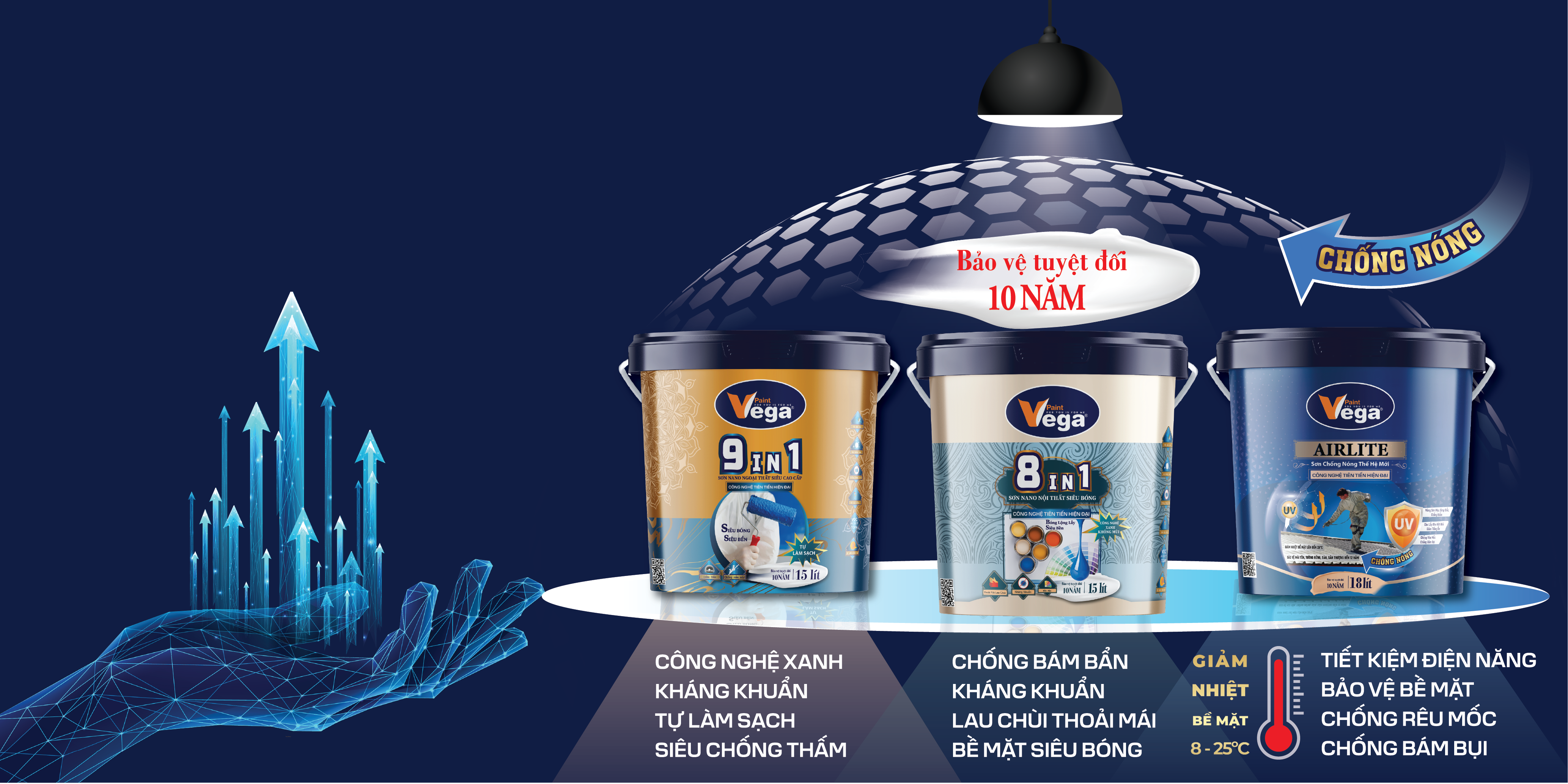 Công ty TNHH sơn VEGA được thành lập vào năm 2015, chuyên hoạt động trong lĩnh vực Sản xuất & Kinh doanh Sơn, Bột trét tường, Vật liệu chống thấm tại thị trường Việt Nam. Hơn 8 năm hình thành và phát triển, sơn VEGA không ngừng nghiên cứu, cải tiến dây chuyền sản xuất và nâng cao chất lượng sản phẩm để đáp ứng nhu cầu về sản phẩm sơn trang trí của thị trường trong nước. Khởi nguồn từ thương hiệu Việt mang tiêu chuẩn quốc tế, luôn luôn dựa trên giá trị cốt lõi, Sơn VEGA đã khẳng định uy tín qua từng dòng sản phẩm, và liên tục nằm trong Top 100 Thương hiệu vàng chất lượng quốc tế năm 2022; Top 100 Thương hiệu nổi tiếng hàng đầu Việt Nam, Top 10 Thương hiệu Uy tín - Chất lượng Quốc Gia năm 2023.